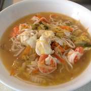 幼面、鲜虾、鹌鹑蛋、姜片、胡萝卜、大白菜、高汤、油、盐、蚝油。