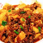 嫩豆腐、肉碎、老干妈油辣椒、洋葱、大葱、大蒜、葱花。