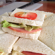 牛奶吐司、早餐火腿、切片奶酪、生菜。