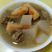 猪脊椎骨、榴莲壳、白萝卜、姜、枸杞子、盐。