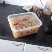 猪皮、泡椒、干红椒、白醋、白糖、盐、花椒、八角、葱、姜。