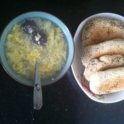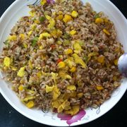 剩米饭、玉米粒、肉松、西芹、盐、鸡精粉。