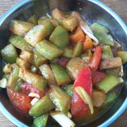 茄子、西红柿、葱花、姜、蒜、盐、生抽、鸡精粉、八角。