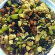 鸡胸肉、黑木耳、黄瓜、葱、姜、花生、八角、花椒、盐、生抽、白糖、鸡精粉、干辣椒。