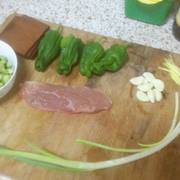 香干、毛豆、肉丝、青椒、大蒜、生姜、料酒、酱油、醋、糖、淀粉、盐。