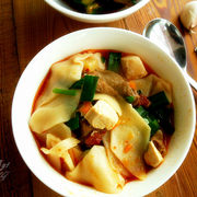 牛肉、面片、土豆、胡萝卜、豆腐、蘑菇、小西红柿、青辣椒、韭菜。