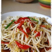 绿豆芽、红辣椒、葱、花椒、油、盐、生抽、醋。
