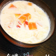 木瓜、银耳、牛奶、枸杞、冰糖。