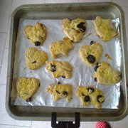 面粉、动物油、鸡蛋、牛奶、葡萄干、糖、泡打粉。