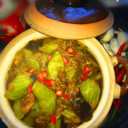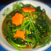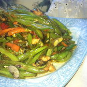 四季豆、大蒜、胡萝卜、雪菜、五花肉、剁椒、生抽、白糖。