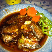 带鱼、姜、蒜、青椒、生抽、黄酒、陈醋、盐、番茄沙司、淀粉、老干妈风味辣椒、糖、玉米油。