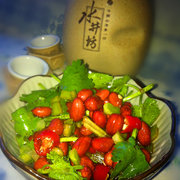 紫皮花生、香菜、青椒、小米辣、生抽、麻油、陈醋。
