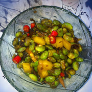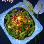 毛豆、大蒜、生姜、小米辣、生抽、盐、糖、麻油。