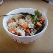 胡萝卜、豌豆片、腊肉、米饭、葱、盐、酱油。