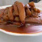 黄豆酱、甜面酱、猪肉、葱、姜、糖、香油。