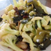 菜花、海带、干辣椒、蒜、盐、味精、蚝油。