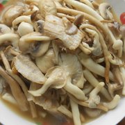 平菇、口蘑、杏鲍菇、蟹味菇、茶树菇、猪肉、葱、姜、盐、蚝油、花生油。