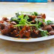 里脊肉、香菜、料酒、秘制酱油、淀粉、洋葱、盐、孜然粒、蛋清。