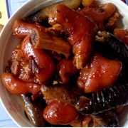 猪脚、海参、八角、香叶、新会果皮、酱油、老抽、水、姜片、老葱头、葱白、五香粉、白酒、冰糖。