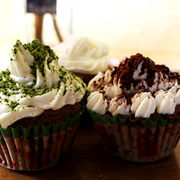 低筋面粉、巧克力块、鸡蛋、淡奶油(装饰用)、抹茶粉(装饰用)、可可粉(装饰用)、红糖、黄油、泡打粉、蜂蜜。