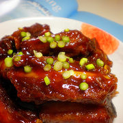 猪肋排、料酒、生抽、香醋、白糖、番茄酱、盐、葱、胡椒、味精、姜。