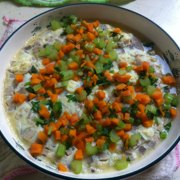 海参、鸡蛋、胡萝卜、煸尖、芹菜、香菜、香干、盐、生抽、香油。