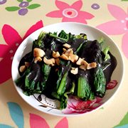 油菜、香菇、肉沫、香菇颈沫、葱、豆瓣酱、油。