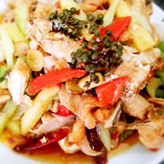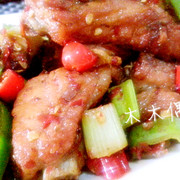 鸡腿、青椒、干辣椒、姜片、蒜片、豆瓣、盐、生抽、胡椒粉、花椒、葱节、料酒。