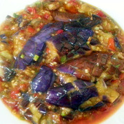 茄子、肉末、泡辣椒、豆瓣、姜、醋、葱花、白糖、老抽、豆粉、蒜。