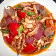 鱿鱼头、小青椒、红椒、洋葱、色拉油、姜片、蒜片、葱节、料酒、胡椒粉、孜然粉、辣椒粉。