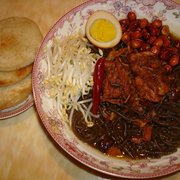 红薯面、五花肉、鸡翅、排骨、熟鸡蛋、油炸花生米、豆芽、黄瓜丝、酱油、食盐、味精、黄酒、白糖、八角、花椒、肉桂、肉蔻、橘皮、小茴香。