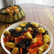 胡萝卜、黑木耳、油条、盐、鸡精。