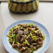 蒜苗、鸡胗、盐、料酒、酱油、鸡精。