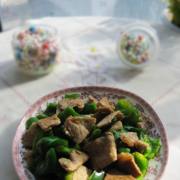 杏鲍菇、猪肉、葱、蒜、葱伴侣大酱。