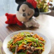 胡萝卜、辣椒、牛肉、盐、酱油、料酒、鸡精。
