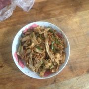 烙馍、青椒、猪肉、食用油、盐、老抽、鸡粉。