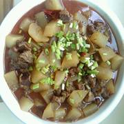 牛腩、萝卜、干辣椒段、花椒、八角、大蒜、红葱头、火锅料、郫县豆瓣酱、姜、盐、生抽、老抽、料酒、白糖、蚝油、鸡精。