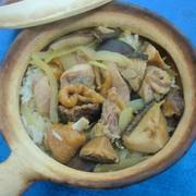 泰国香米、鸡腿、香菇、洋葱、芹菜、生抽、盐、麻油、味精。