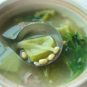 苦瓜、猪骨、黄豆、蒜头、酸菜、香菜、味精、盐。