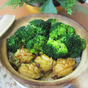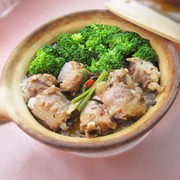 泰国香米、排骨、西兰花、地瓜、红辣椒、蒜头、豆豉、葱、蠔油、沙茶酱、生抽、油、味精。