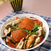 膏蟹、鸡蛋、香菇、五花肉、红辣椒、葱、油、生抽、味精。