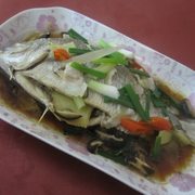 黄鲷鱼、姜、葱、红辣椒、五花肉、香菇、生抽、味精、油。