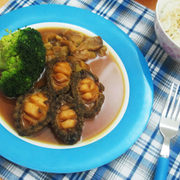 鲍鱼、鸡爪、鸡翅、猪皮、西兰花、板粟、红参。