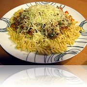 蘑菇、洋葱、萝卜、方腿片、米饭、意大利辣香肠、黄油、牛奶、盐、黑胡椒、芝士、红酒。