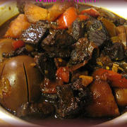 土豆、方腿肉、胡萝卜、大葱、洋葱、绿色园椒。