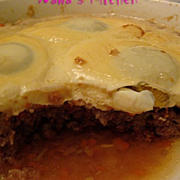 土豆、洋葱、胡萝卜、牛肉糜、大蒜、大葱、月桂树叶、辣酱油、番茄沙司、蔬菜精、精制油、黄油、盐、牛奶。