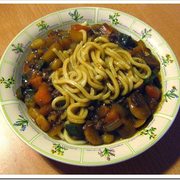 胡萝卜、即食鸡肉、即食猪肉、园椒、黄瓜、香葱、尖头辣椒、面。