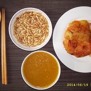 南瓜、土豆、盐、麻油、葡萄酒醋、淡酱油。
