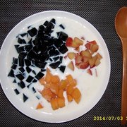牛奶、龟苓膏、甜杏、李子、蜂蜜。
