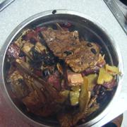 腊肉(五花)、腊鱼、五香豆干、姜、干豆豉、干红辣椒丝、味精(鸡精)、芝麻香油。